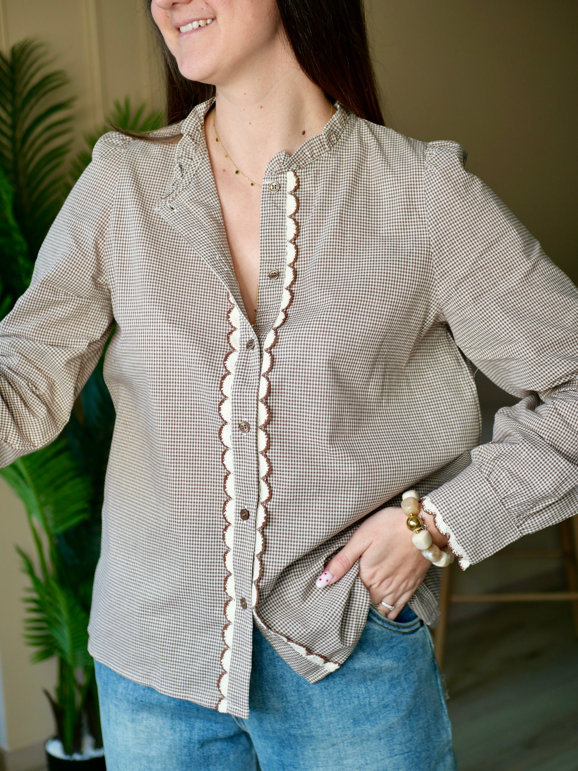 Blouse manches longues dans les tons marron/taupe