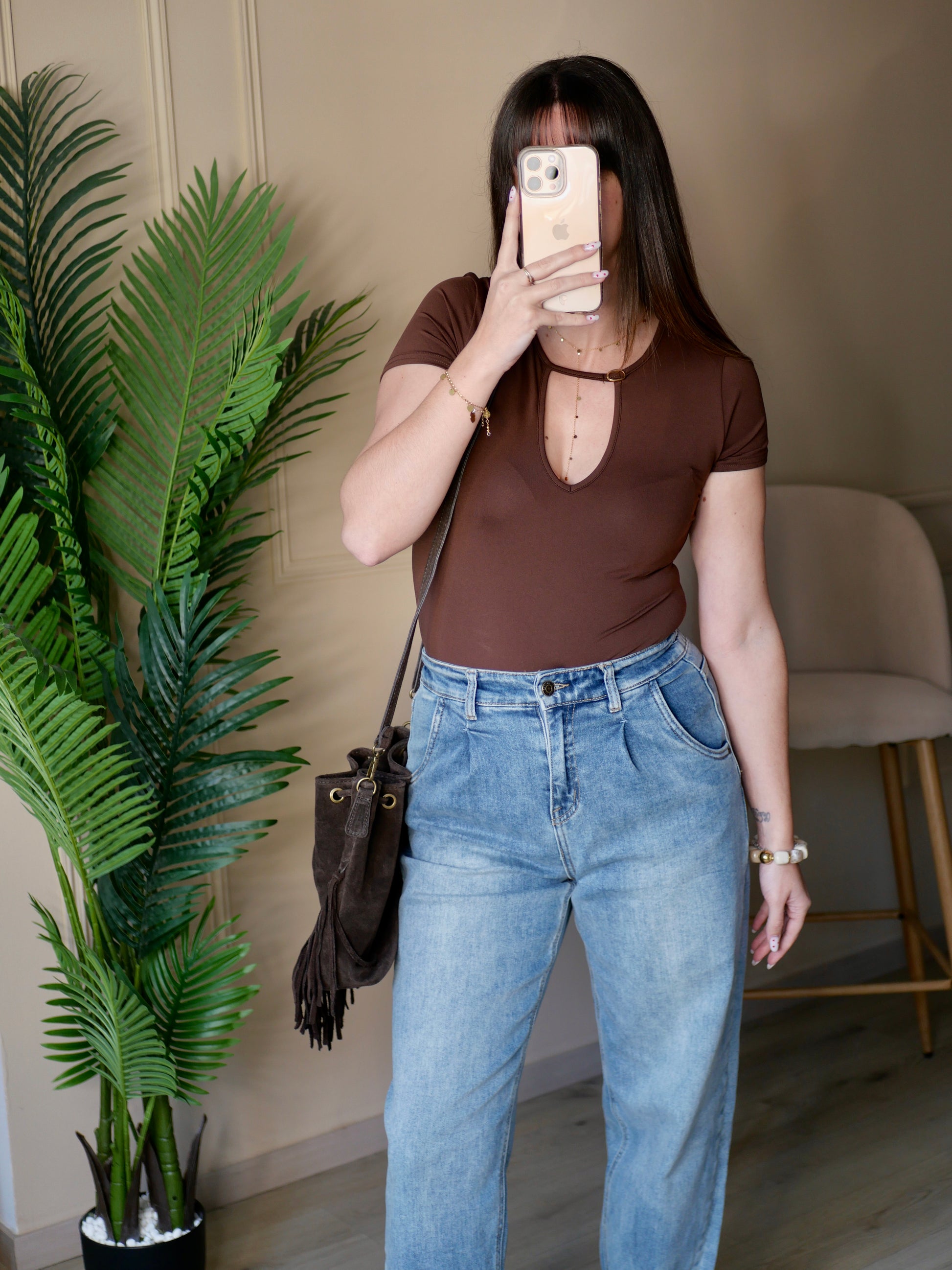 Body chocolat avec manches courtes