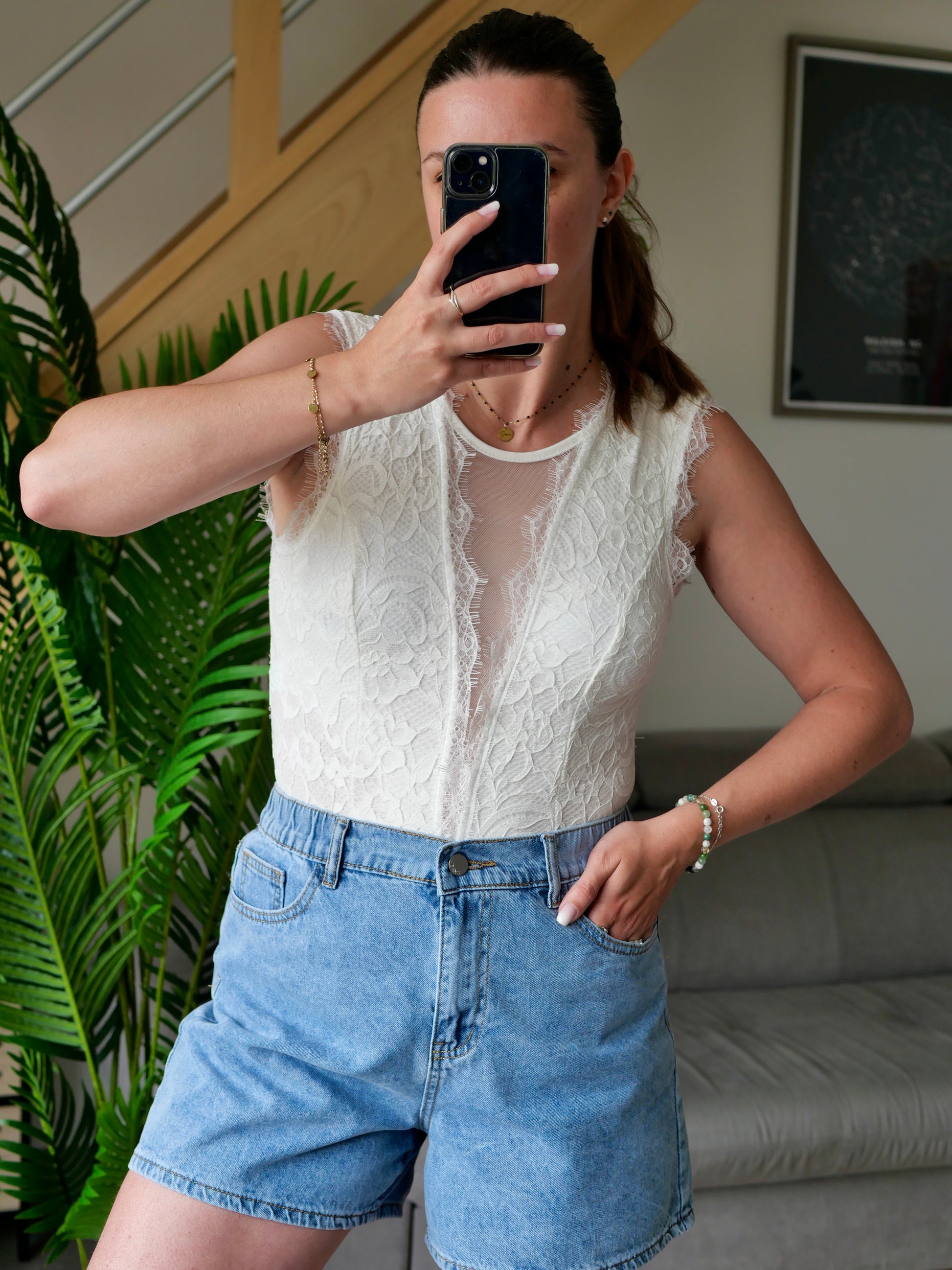 Ce body en dentelle, à couleur classique peut se porter autant avec un pantalon/jean qu'avec une jupe. Il donnera un côté toujours classe à votre tenue.