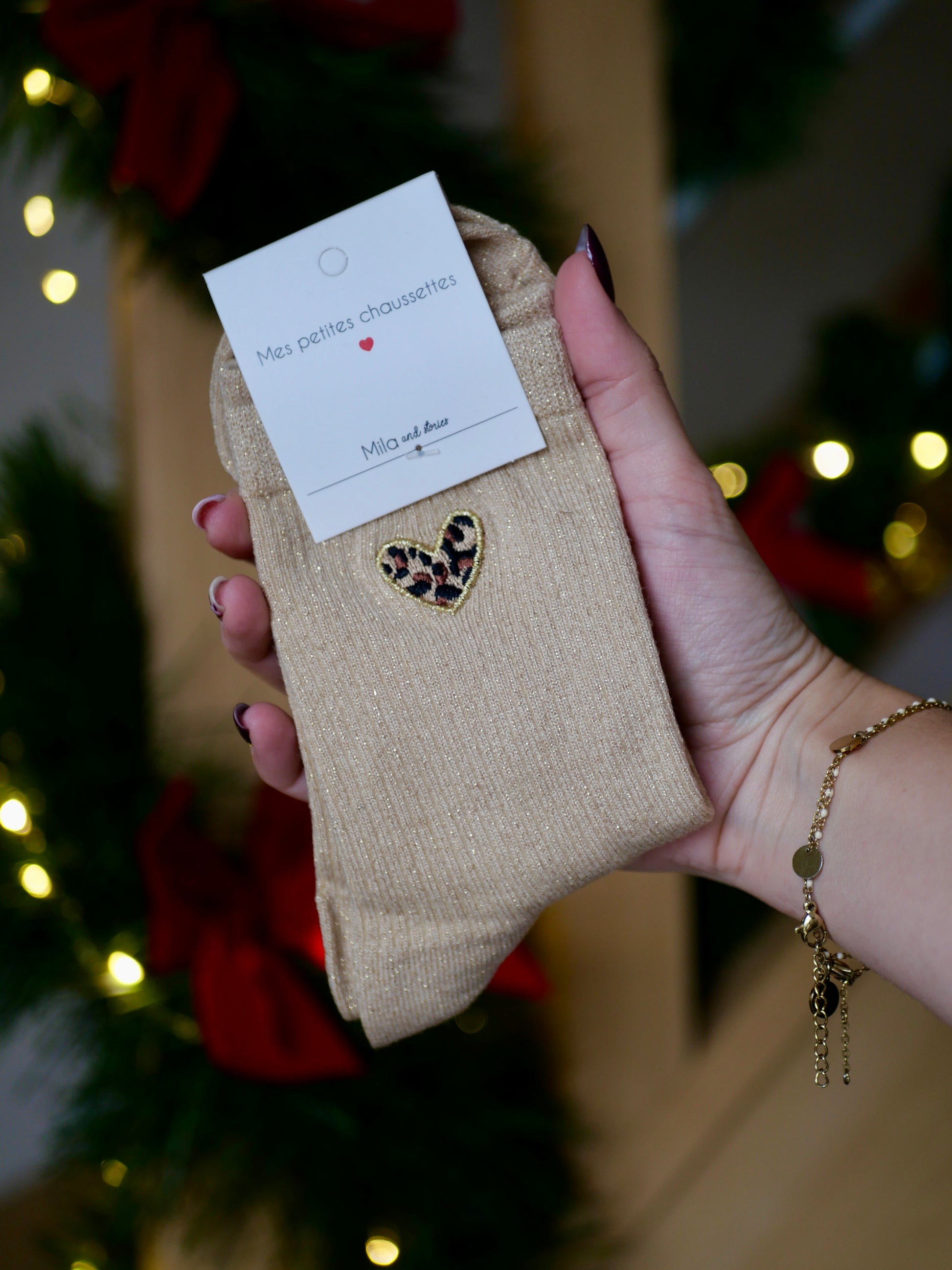 CHAUSSETTES PAILLETÉES LÉOPARD BEIGE