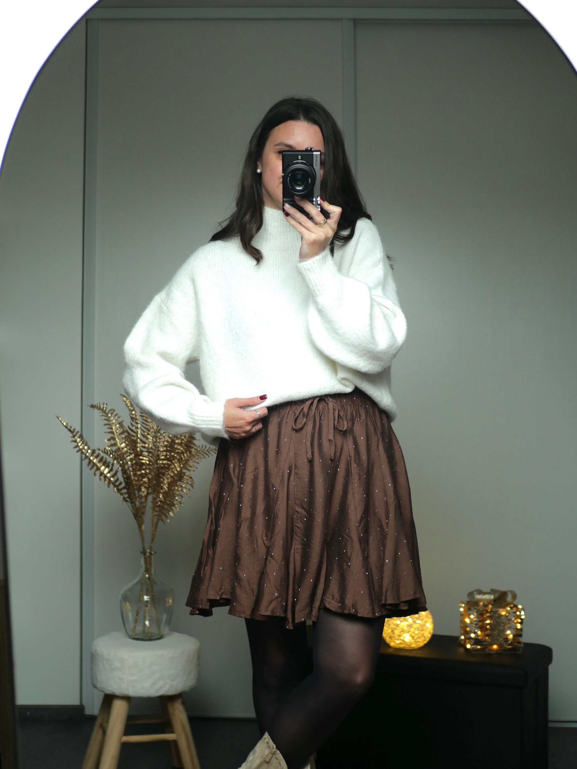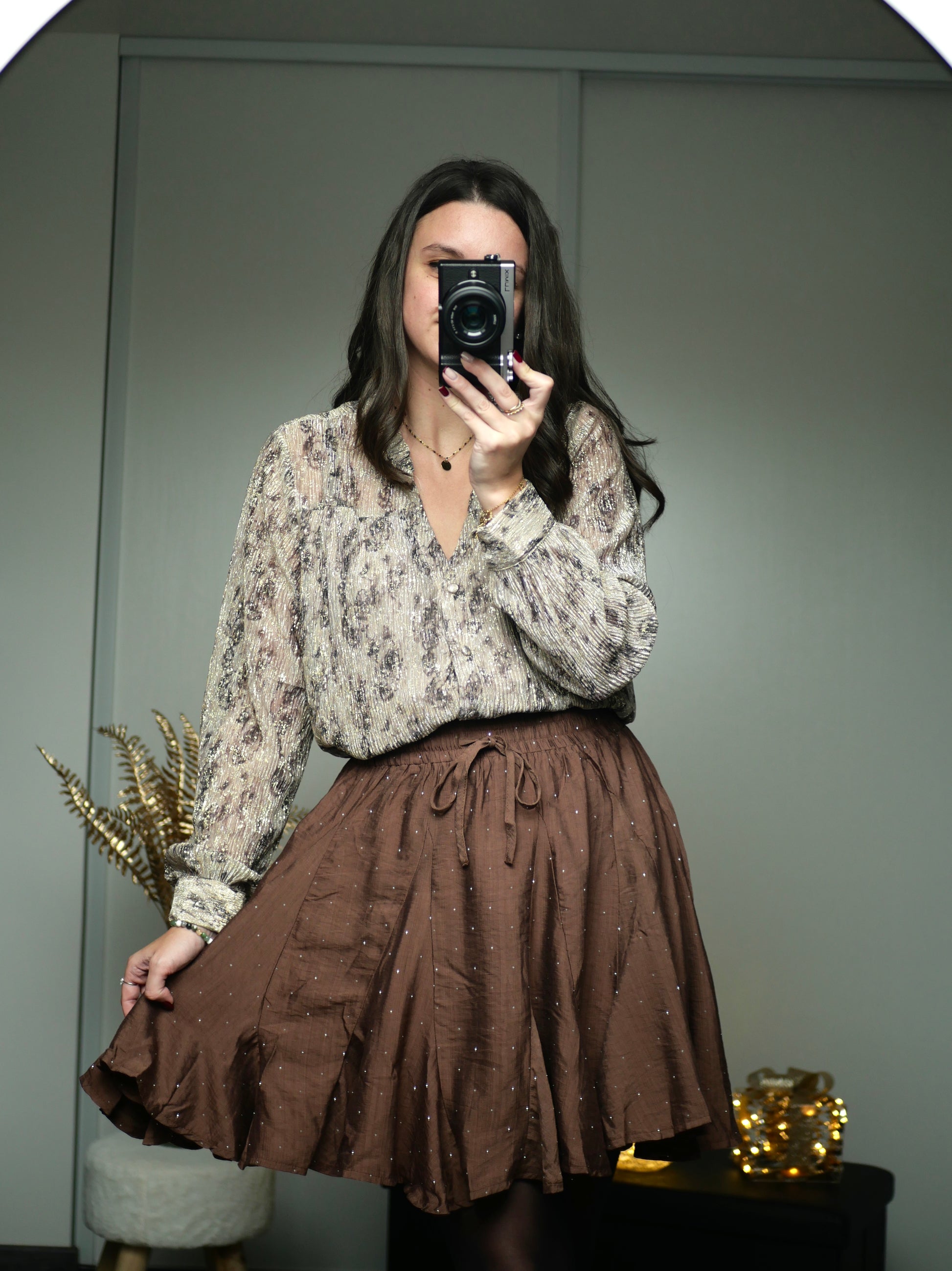 Jupe évasée couleur marron avec petits strass