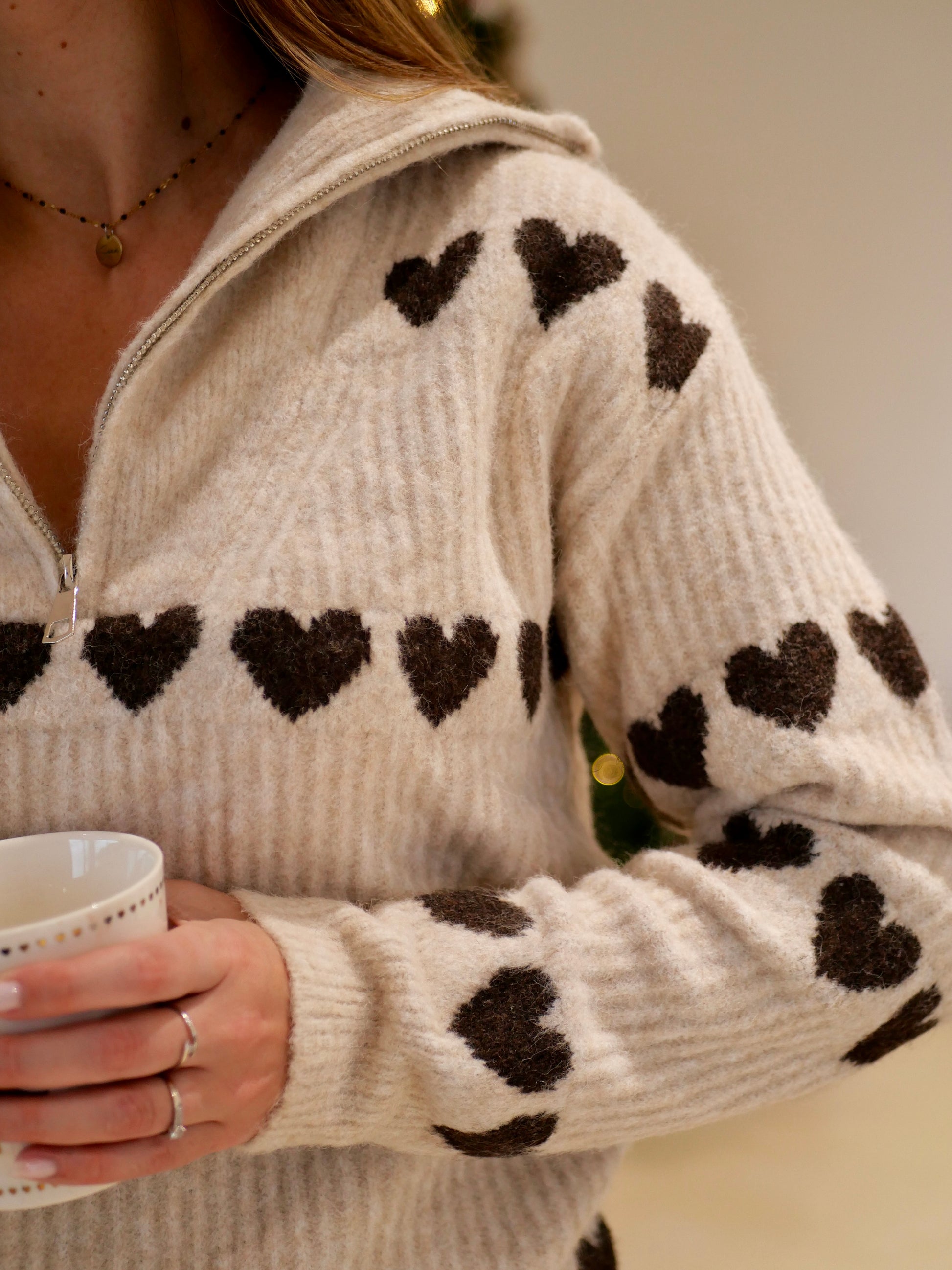 Pull camionneur beige avec coeur chocolat