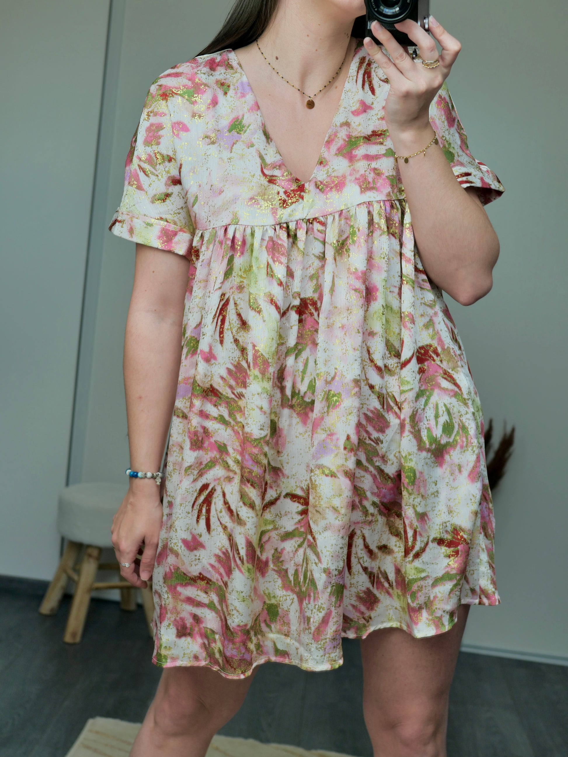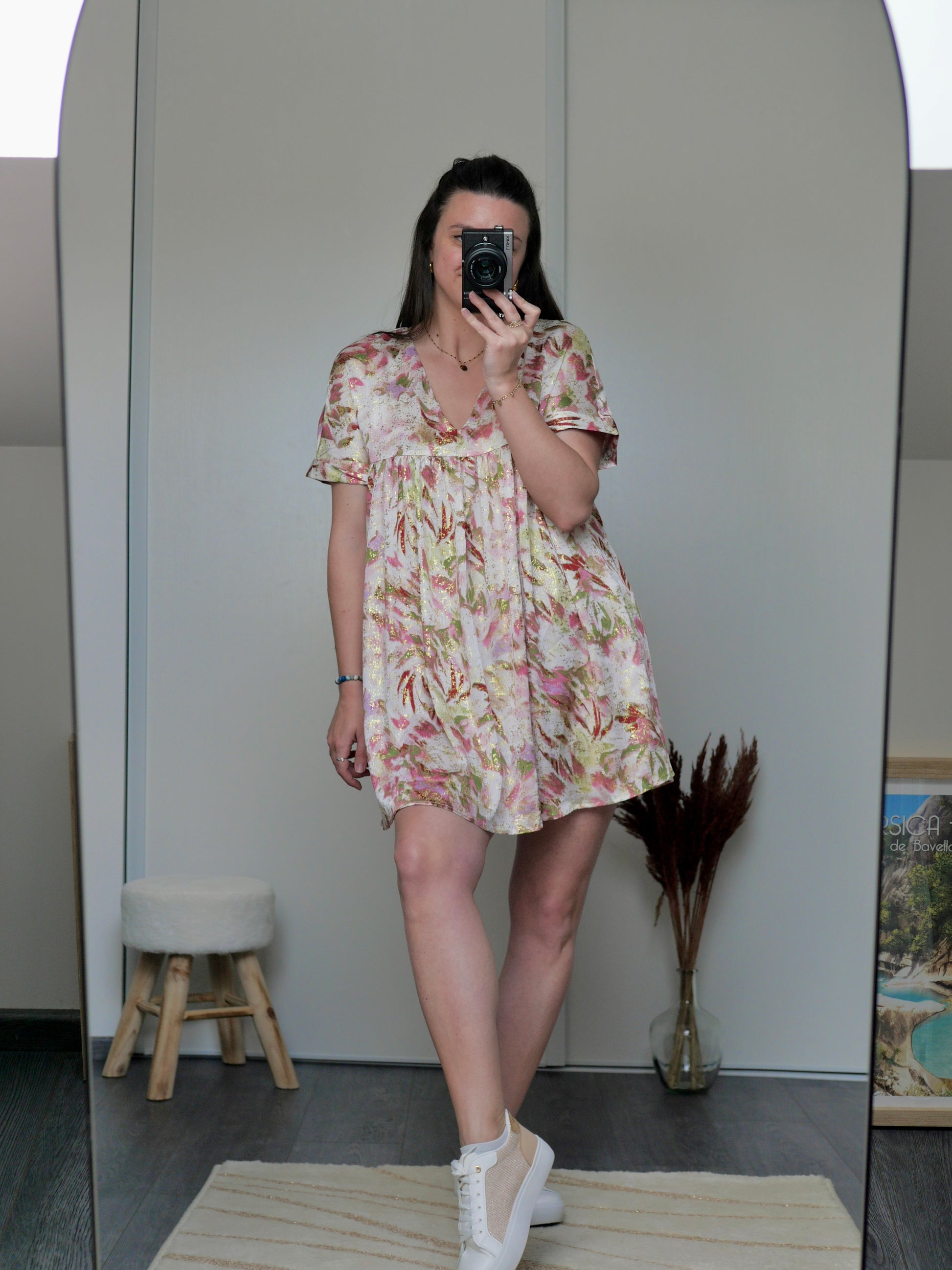 Cette robe courte vous fera succomber par ses détails de couleurs, mais aussi par son short intégré ainsi que son petit dos nu.