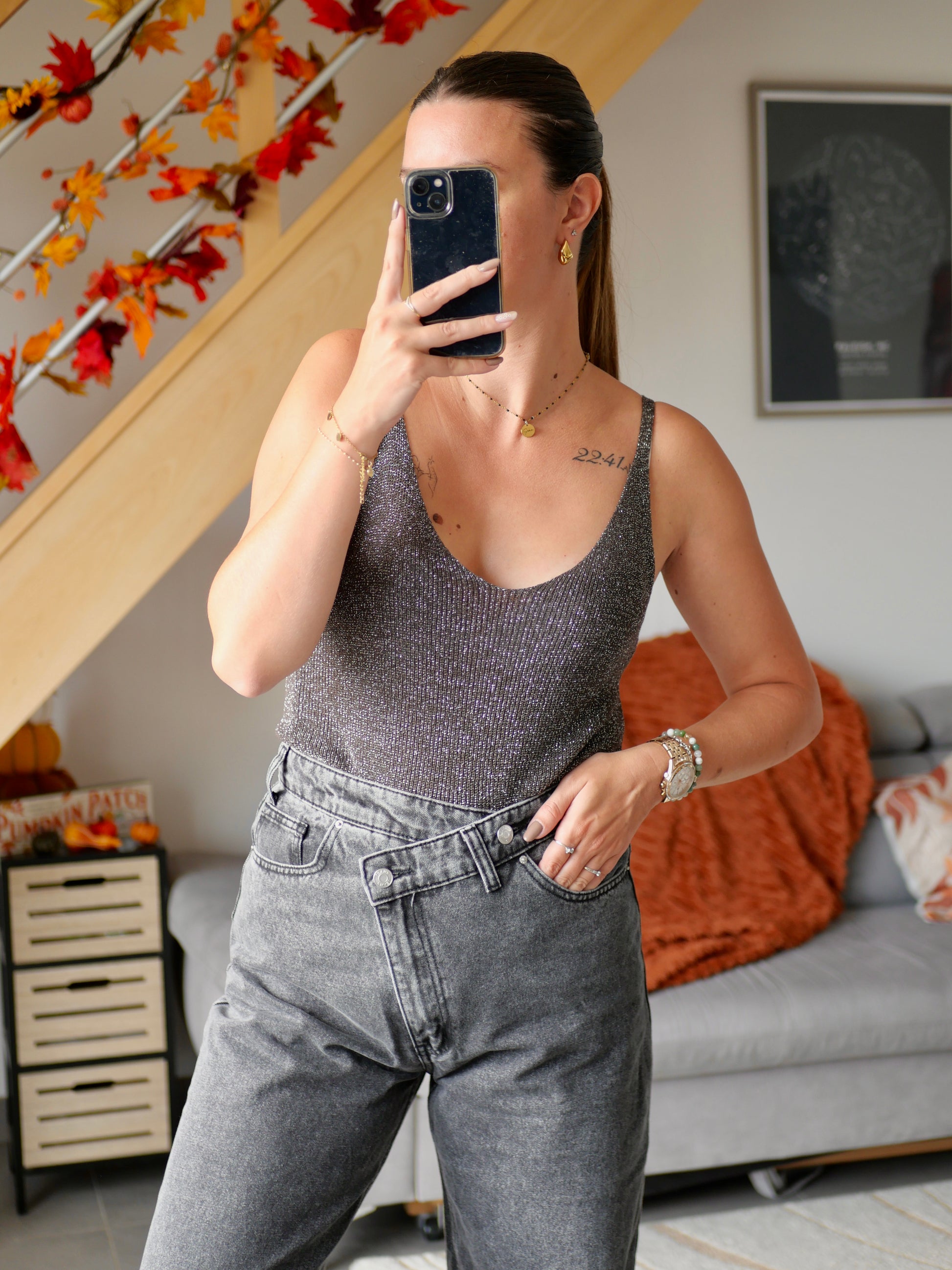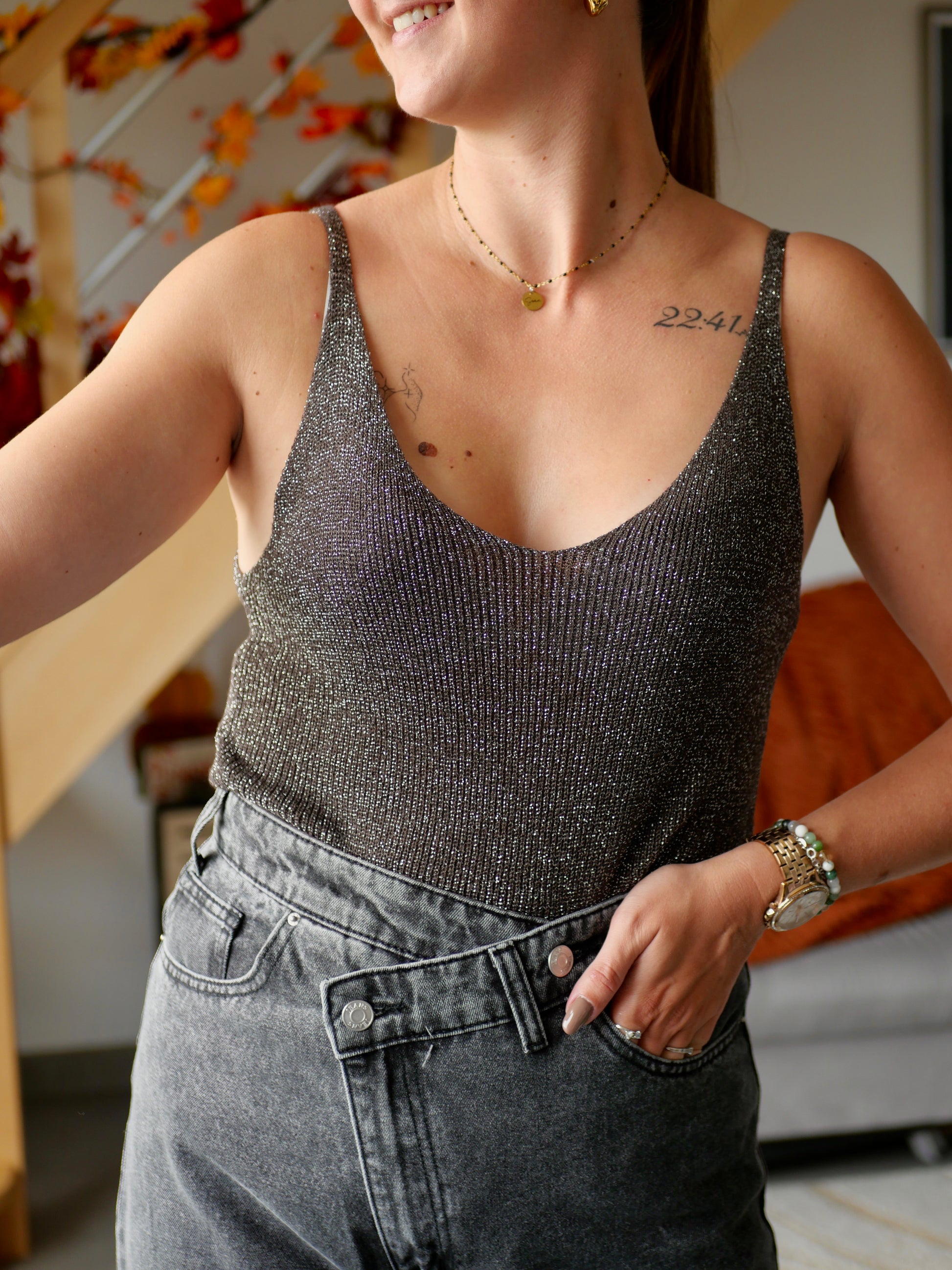 Ce petit top parfait pour la saison vous accompagnera parfaitement pour vos tenues avec son petit détail pailleté sur tout le débardeur.